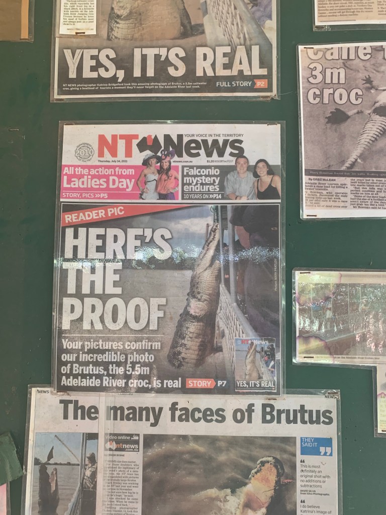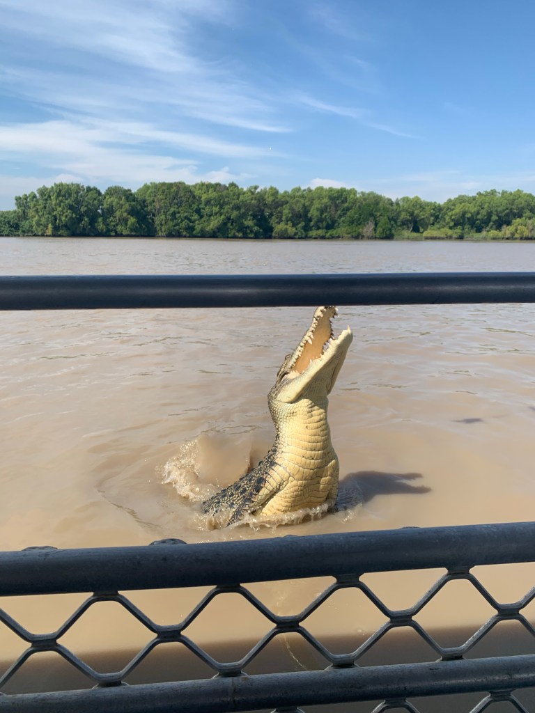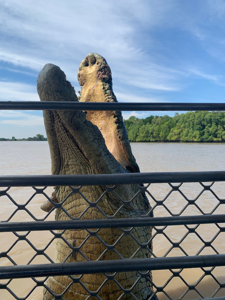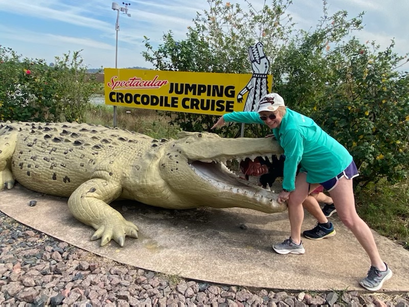 Highlight of my trip so far. Left Darwin and drove to a Jumping crocs tour. Took photos with the big croc, looked in their shop and examined their displays.. to be told after presenting our tickets that we were at the wrong tour group. Thank goodness I am with people who like to be early.