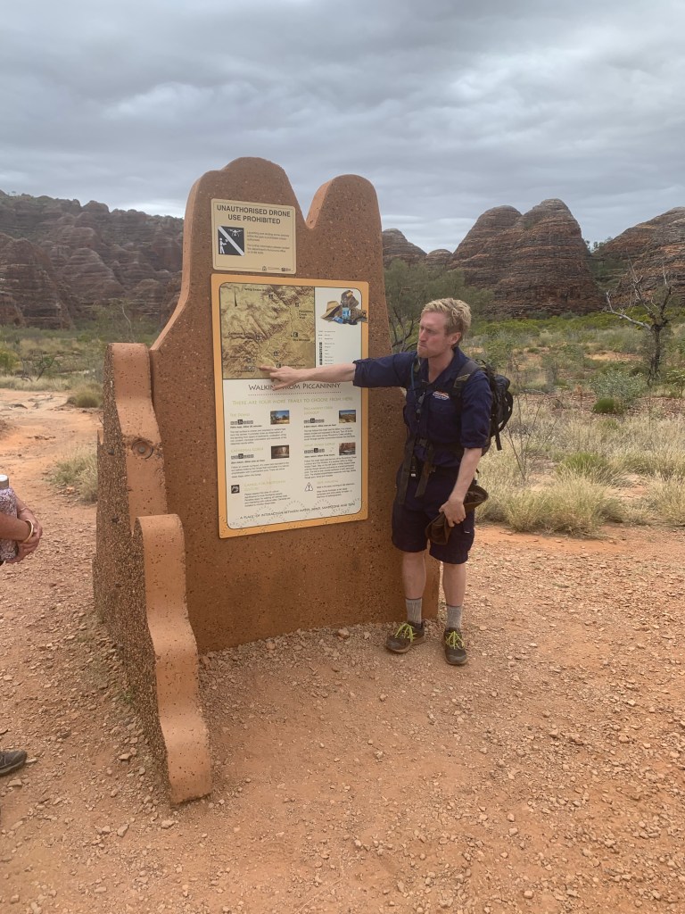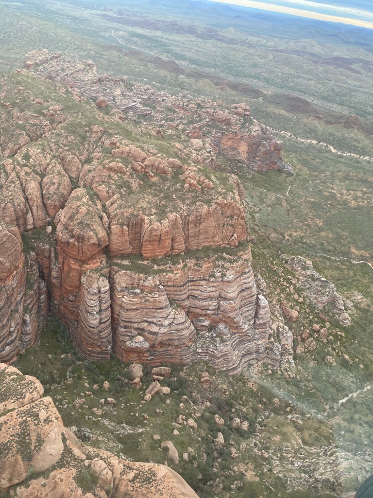 We landed at Purnululu National Park and indulged in a morning tea of little cakes and a hot drink. Ben, our guide, and Waylon, a proud Gidja man, were out land guides and took us on a teeth-shattering bus trip to the car park of the Cathedral Gorge walk.