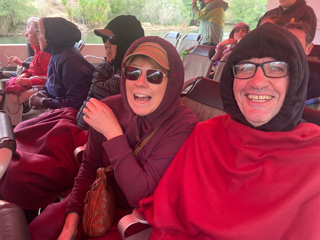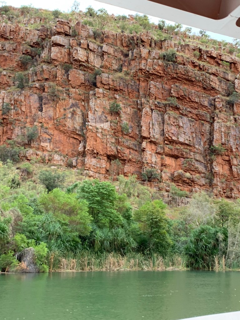 We joined the boat and our tour guide, Grant and began our 55km cruise back to Kununurra. The first 15km was an exhilarating ride through the narrowest section. It was freezing so each of us grabbed a blanket to help shield ourselves from the elements.