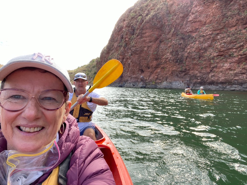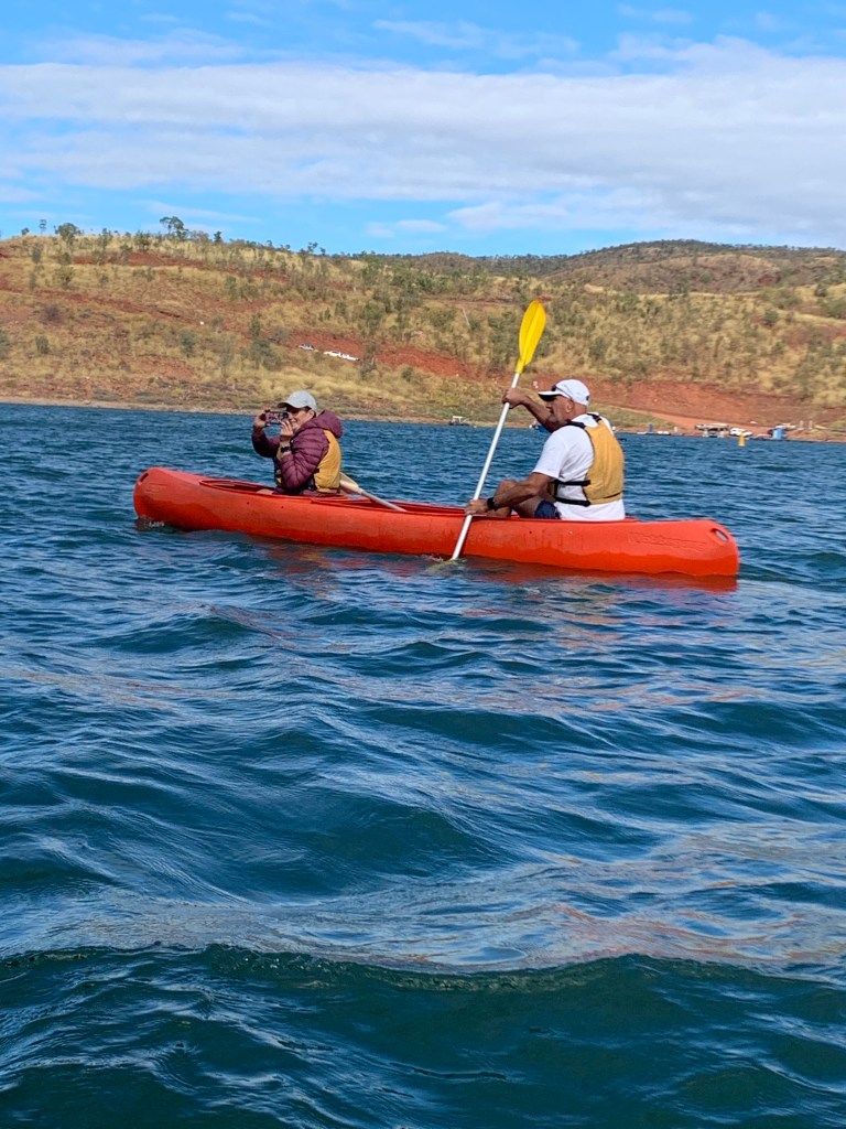 Due to the previous day’s bad weather, there was some reluctance from a couple of our tour members to partake in this activity. As it turns out, their concerns were unwarranted. The water was a little choppy but nothing these adventurers couldn’t handle. Wayne and I were even asked to retrieve an esky lid by an occupant of one of the house boats.