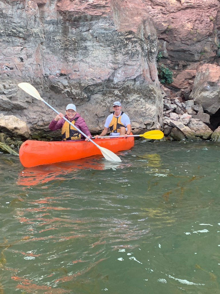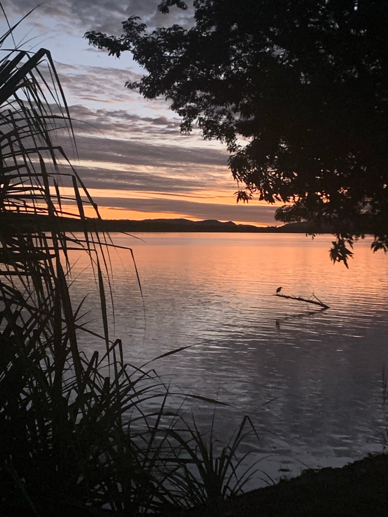 We all went down to the lake to watch the sunset. Unfortunately, there was still some cloud cover so it wasn’t as beautiful as the first night where I was the only witness. On the first evening, I was out getting mine (and Donna’s) steps up and for the first time on this trip, I didn’t have my phone on me. It was the most magnificent sunset and I thought we could see it the next night …and that’s when the poor weather set in. Note to self: seize the day! I should have ran back, grabbed my phone and tour group, and taken a photo.