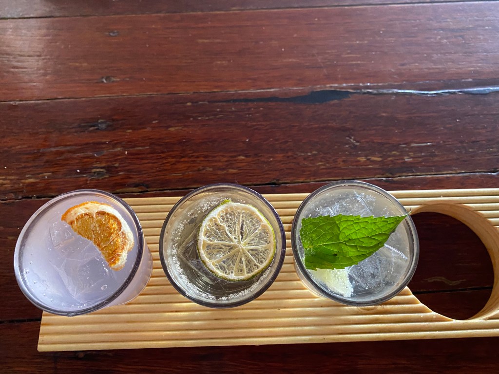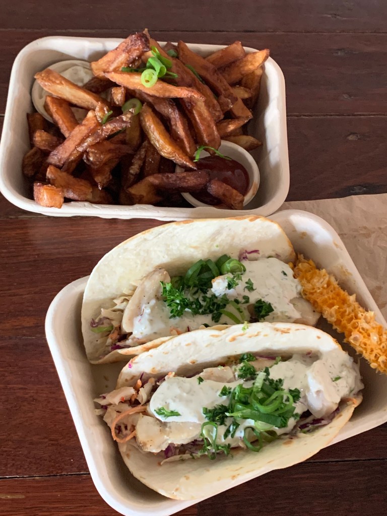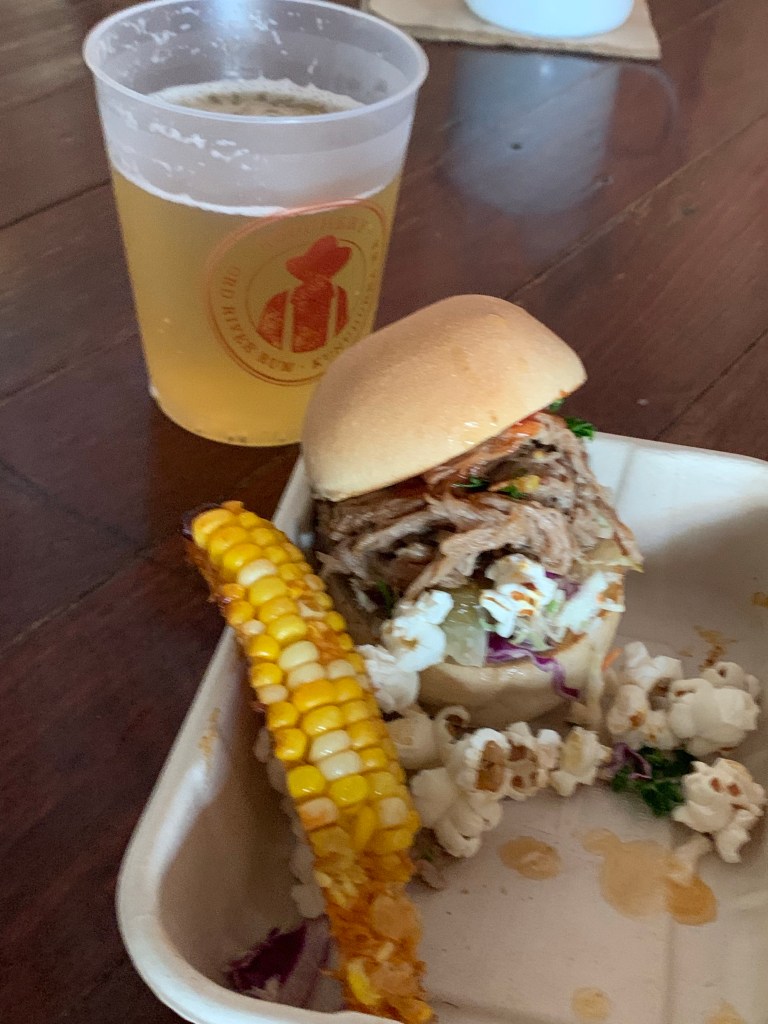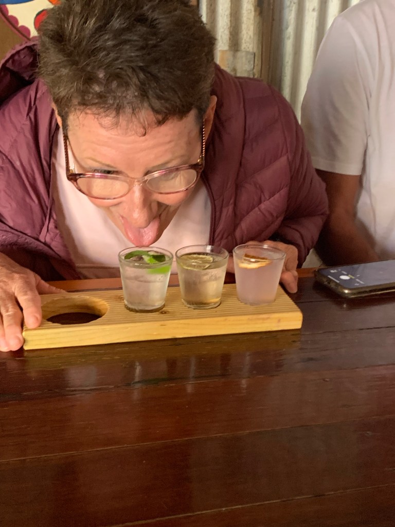 We detoured via Hoochery Distillery on the way home and had lunch – fish tacos and pulled pork sliders. Donna and I got the cocktail paddle.
