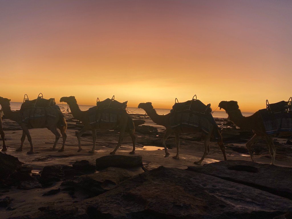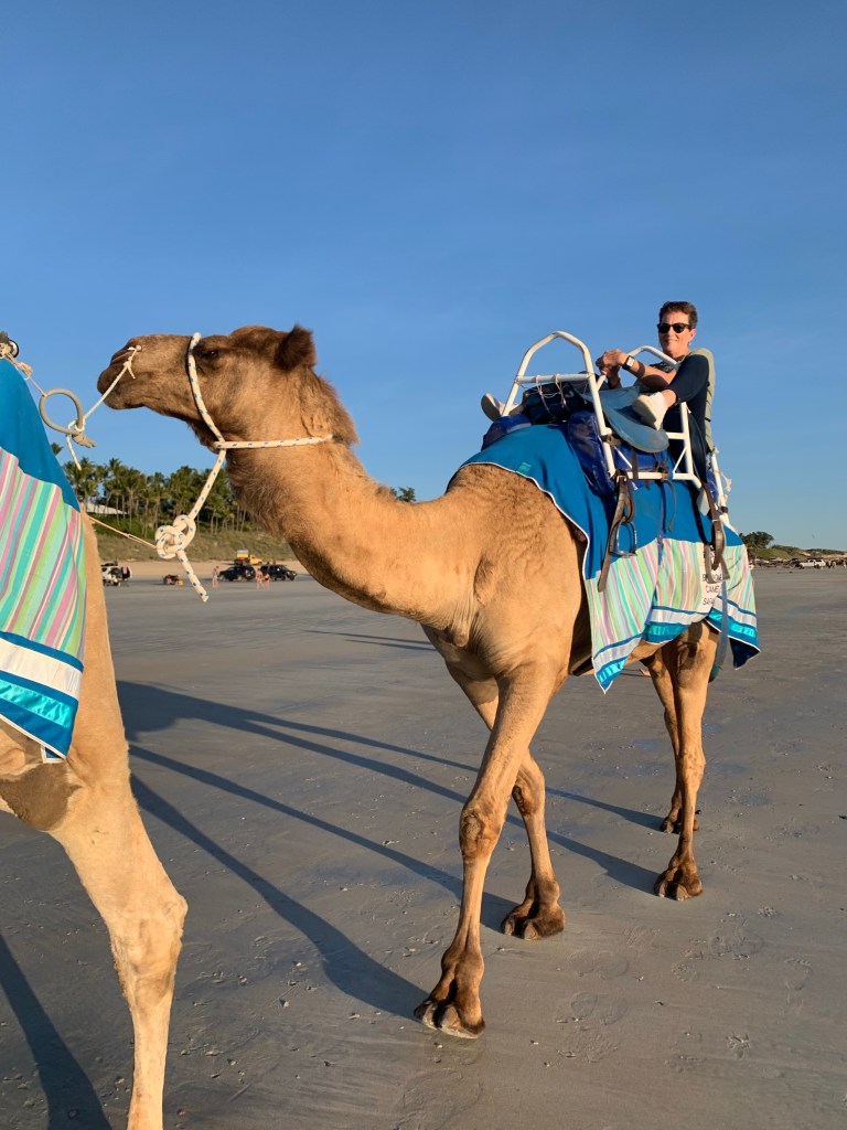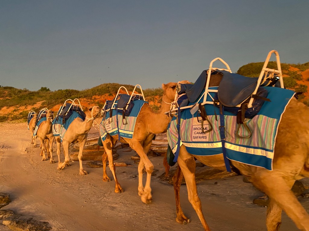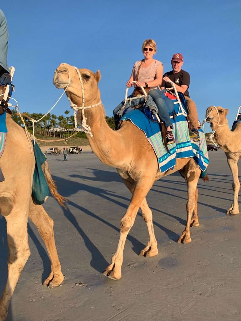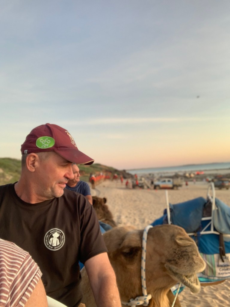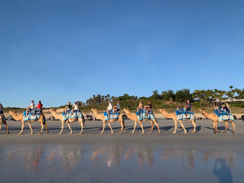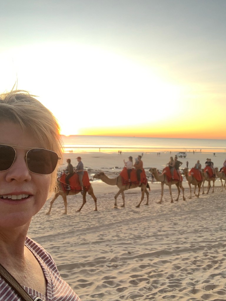 We returned to Cable Beach and joined our sunset camel tour. There were three operators. We were with the blue group and it was run by Alison, the only female operator.