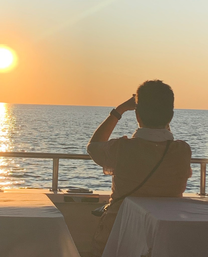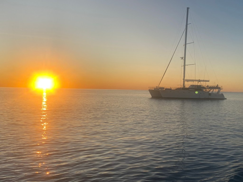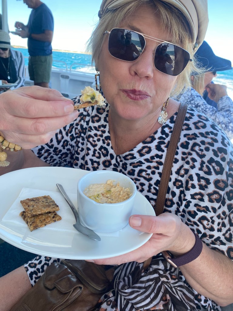 The boat then travelled to Cable Beach and anchored. We indulged in the final four courses at tables and sat with our new friends, John and Judy.
