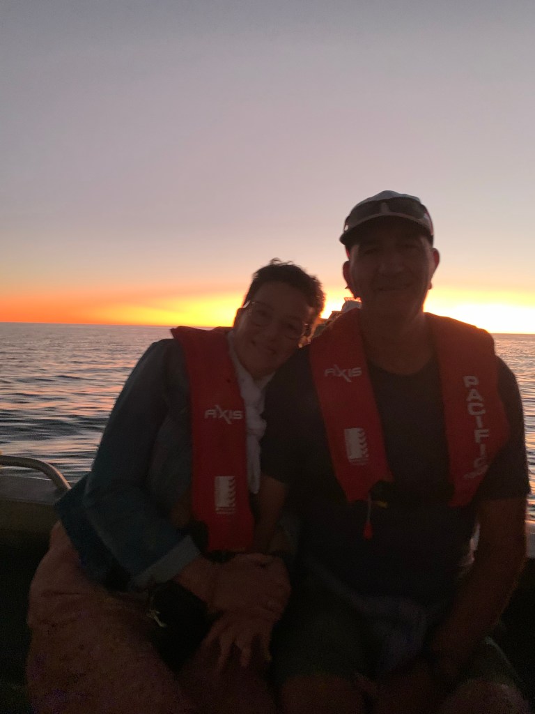 The weather was perfect; our seven courses of seafood and dessert were delicious; the company was great. What more could a person ask for?How about a pod of whales swimming past the front of our boat?