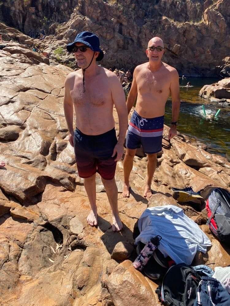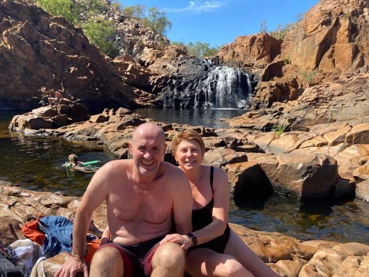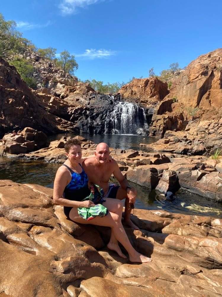 Donna and Wayne enjoying a cold dip! We then walked up to the top falls. Getting up to the falls was a bit of a hike and sliding in and out of the water required some manoeuvring but it was so worth it.